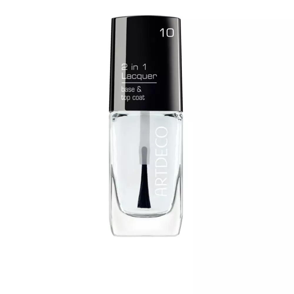 The ARTDECO 2 IN 1 LACQUER acts as a transparent base and top coat to protect nail color and reduce premature chipping. Its clear, quick-drying formula preserves vibrant shades and helps secure a flawless manicure in minutes without altering the polish color.