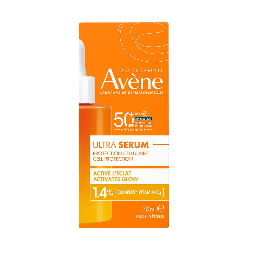 AVÈNE Ultra Serum SPF50+ Radiance delivers Vitamin C brightening with SPF50+ protection in a fast-absorbing 30 ml serum. Designed to even skin tone and boost radiance, it shields skin from daily sun and environmental stress while leaving a fresh, lightweight finish. Use daily under makeup or on bare skin for a luminous, protected complexion, without heaviness or greasiness. Ideal for a daily skincare routine, helping maintain balance and glow.