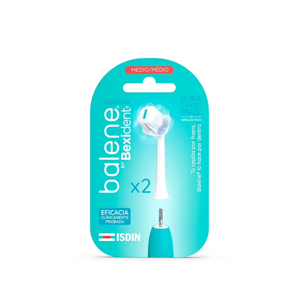 Balene Duotech Sonic Brush Heads are medium-bristle replacement heads sold as a 2-pack for Balene Duotech Sonic toothbrushes. Designed to maintain cleaning performance, these replacement heads offer consistent plaque removal and gentle care. Easy to attach, they help keep your brushing routine effective and hygienic between replacements. A handy, ready-to-use solution to keep your Balene Duotech Sonic brushing on track.