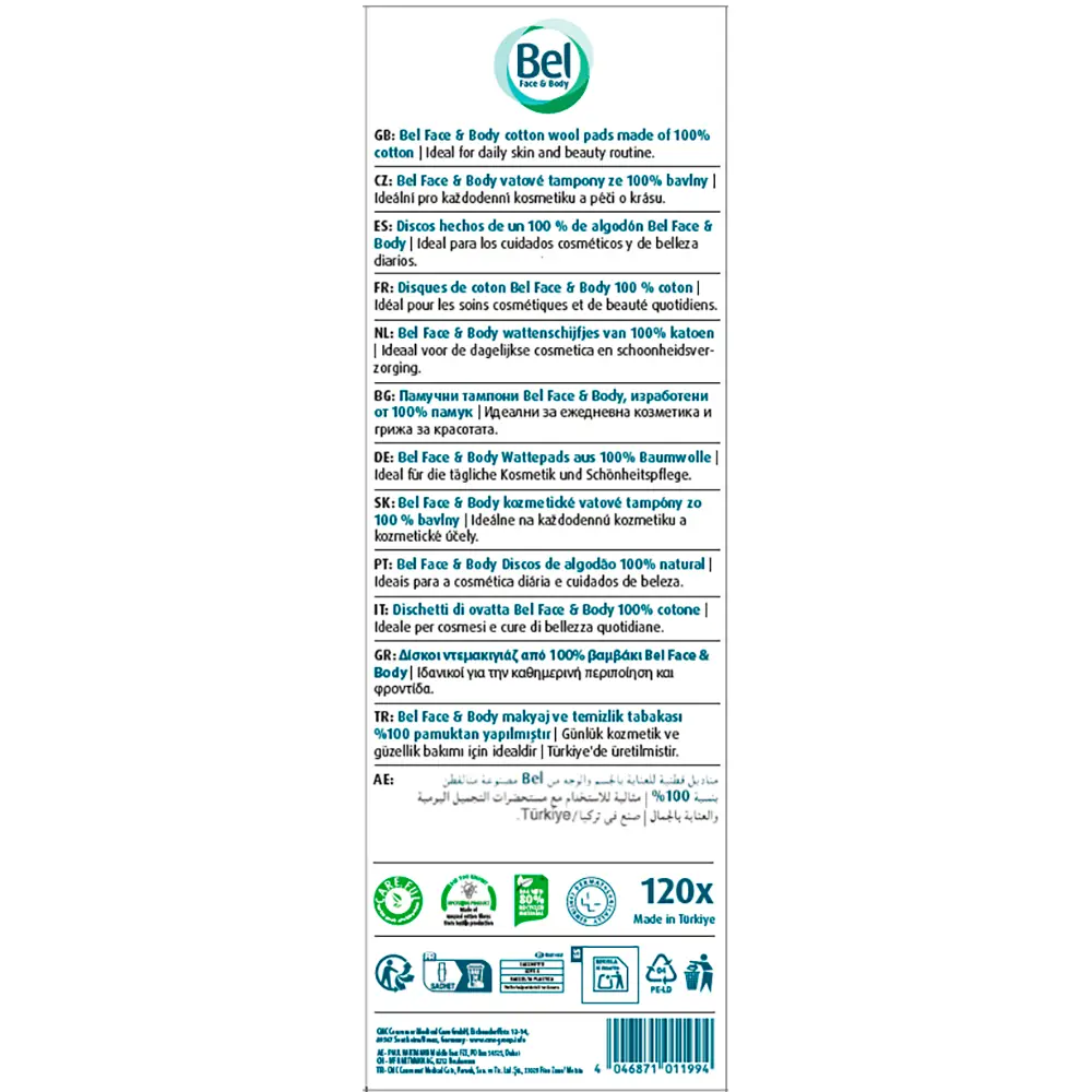 Cosmoplast Cotton Pads are round discs made from 100% cotton, designed for safe, gentle skincare and makeup removal. This pack includes 120 units, offering ample supply for daily routines. Soft, breathable pads are ideal for cleansing with toners, removing makeup, and applying serums without irritation. Choose Cosmoplast Cotton Pads for clean, simple skincare results every day. Great for daily routines at home or in salons.