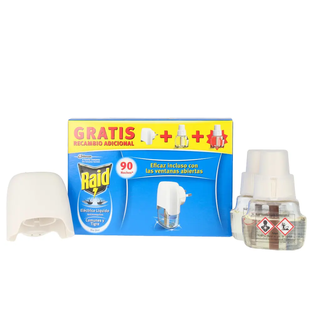 RAID Mosquito Protection Device + 2 Refills delivers reliable indoor defense against regular and tiger mosquitoes. This scent-free electric unit provides up to 90 nights of protection and remains effective with windows open or lights on. Compact and easy to use, it includes 2 refills for extended coverage, a discreet solution for homes and enclosed outdoor spaces for peace of mind. Mosquito Protection Device.