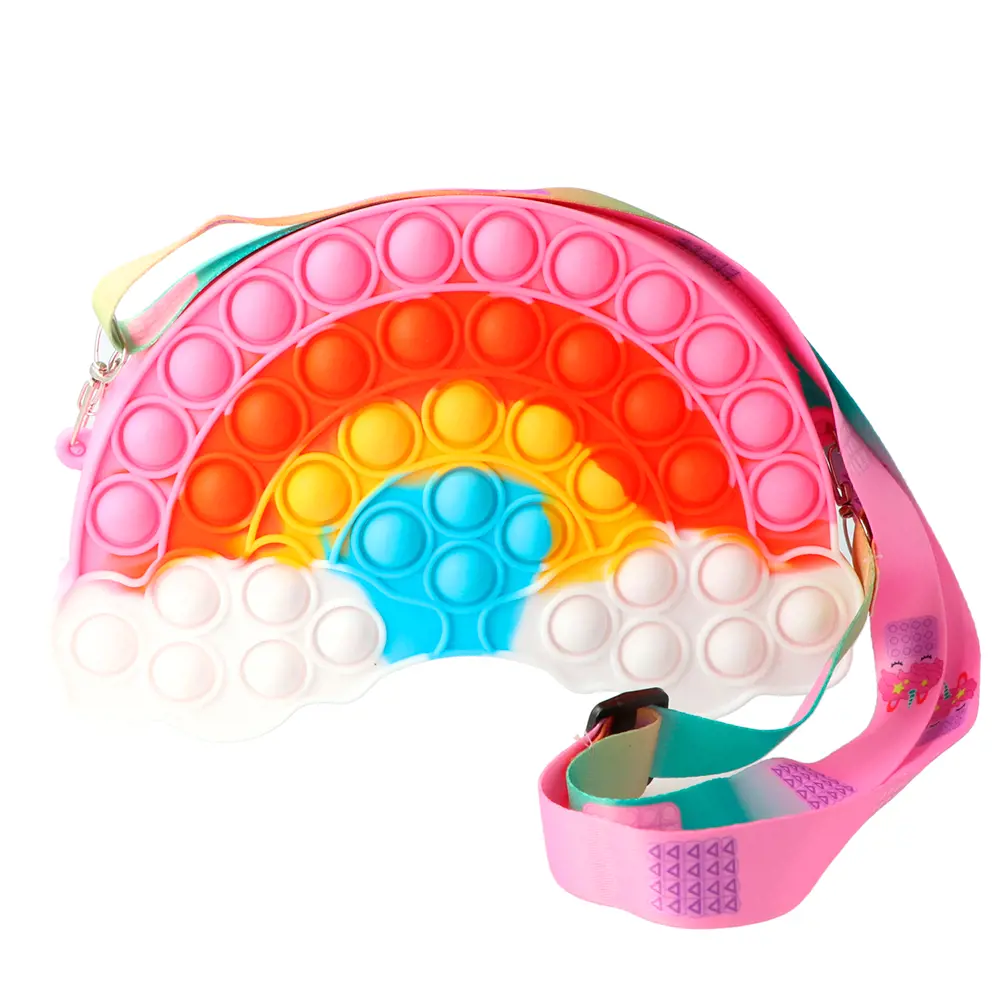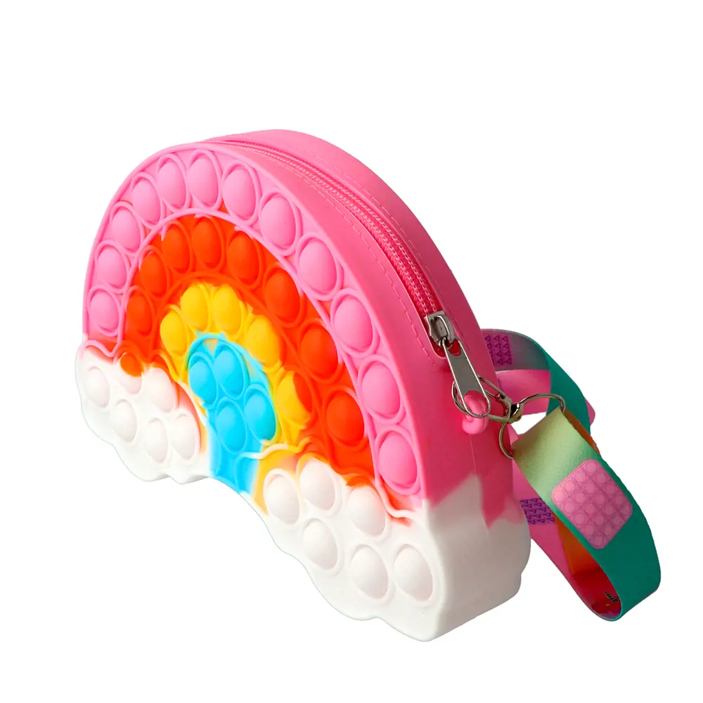 Lightweight and portable, the Rainbow Pop-It Crossbody Bag is an engaging accessory that keeps small essentials close while providing playful entertainment for toddlers and preschoolers.