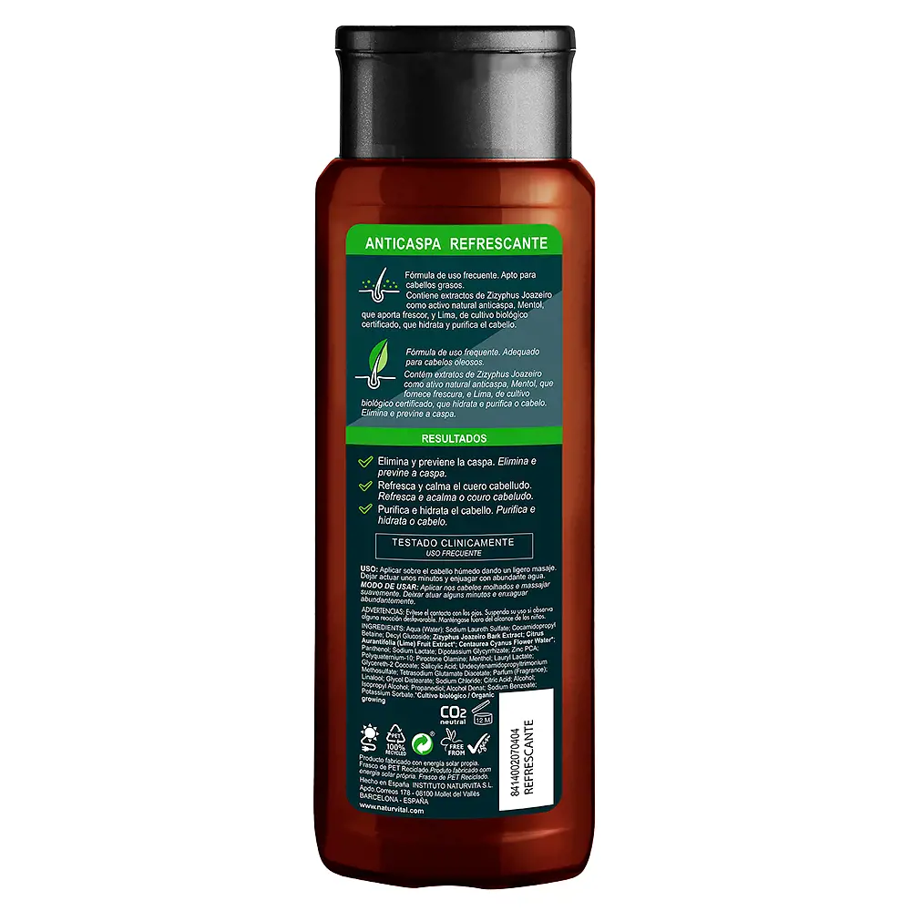 Anti-Dandruff Shampoo For Oily Hair 300ML from NATUR VITAL provides a revitalizing cleanse for oily scalps with frequent use. This formula blends Saw Palmetto, Menthol, Ginseng, Licorice derivatives, and a Phytoactive Complex from Wheat and Soybean seeds to help reduce dandruff and address hair thinning. Caffeine boosts microcirculation for better absorption of actives, leaving the scalp refreshed, nourished, and visibly healthier-looking.