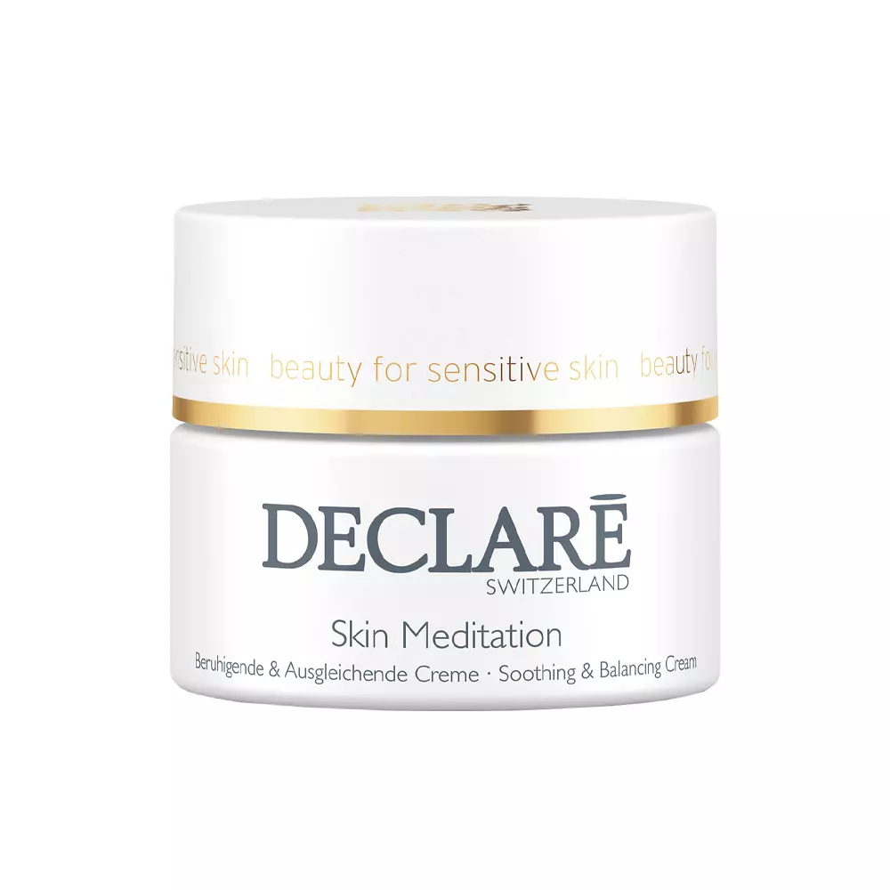 Stress Balance Skin Meditation Cream 50ML from DECLARÉ is a calming, harmonizing face cream formulated for all skin types, with a special focus on sensitive and inflamed skin. It delivers immediate relief from irritation, redness, itching and flakiness while reinforcing the skin’s natural barrier to shield against external aggressors.