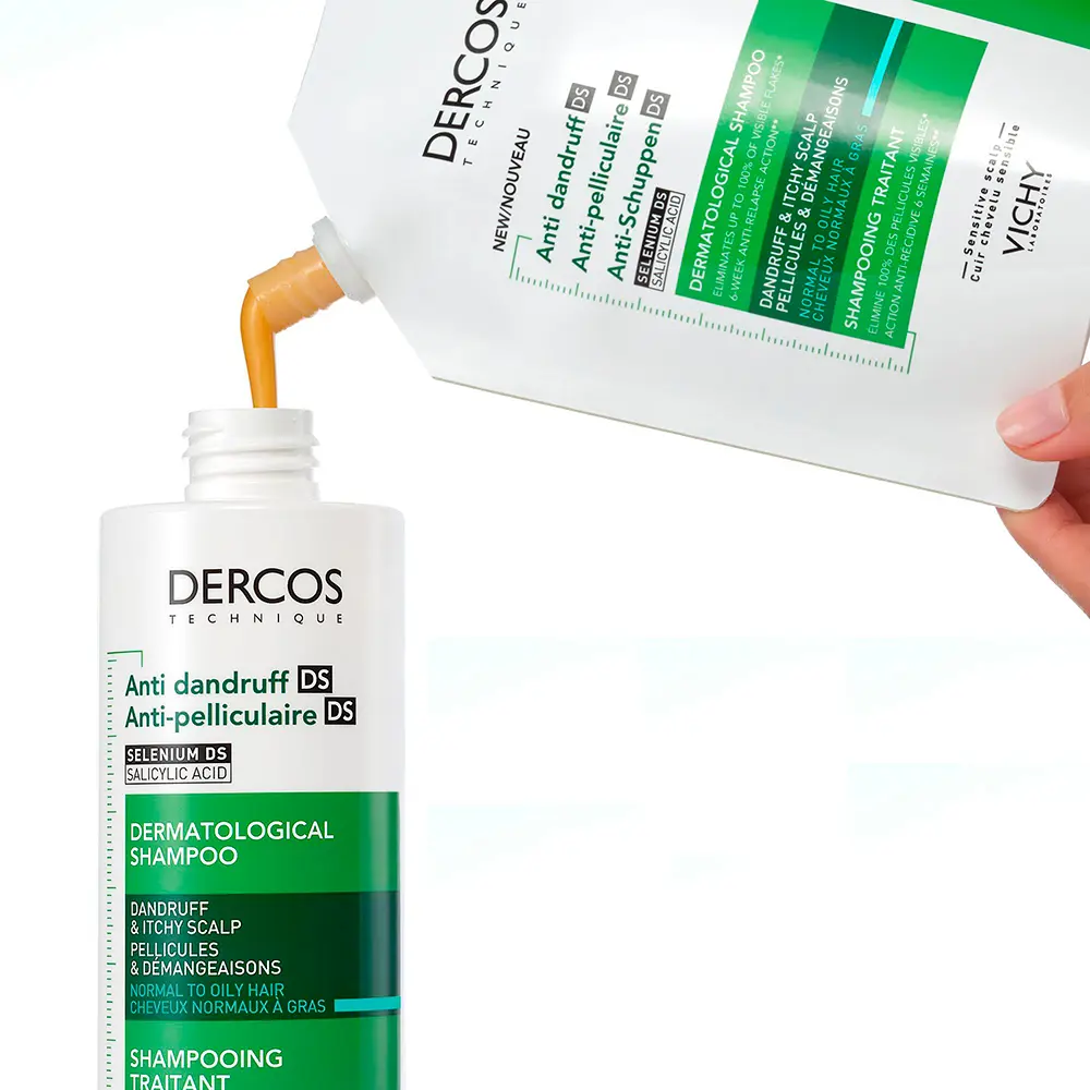 Dercos Anti-Dandruff Shampoo by VICHY is designed for typical to oily hair, targeting persistent dandruff and helping to prevent its return. Suitable for both men and women, this paraben-free ecorefill delivers visible control with NOTICEABLE RESULTS IN 6 WEEKS TO PREVENT REOCCURRENCE.